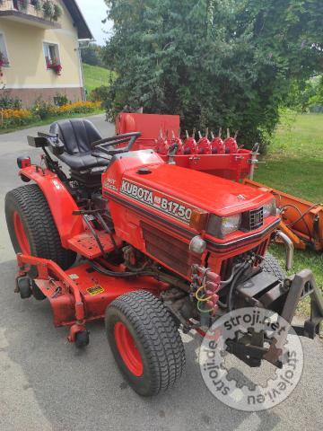 Vrtni traktor Kubota B1750 s priključki. Zelo dobro ohranjen, 900 delovnih ur. Moč motorja: 20PS (14,9kW). Travniške pnevmatike.
